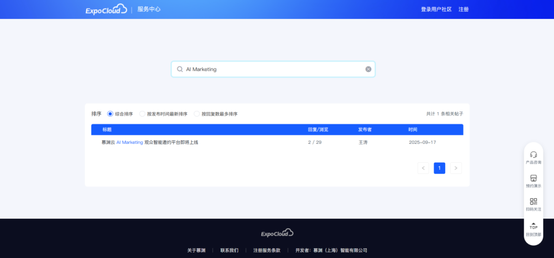 告诉大家一个好消息:慕渊会展云用户社区正式对外开放啦!